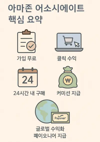 아마존 어소시에이트는 단순 광고가 아닌 콘텐츠로 수익을 창출하는 합법적 비즈니스 모델이다. 글로벌 이용자를 대상으로 언제든 수익을 창출할 수 있으며, 꾸준한 콘텐츠 생산과 SEO 최적화만 잘 이뤄진다면 지속 가능한 수익 구조로 발전할 수 있다.