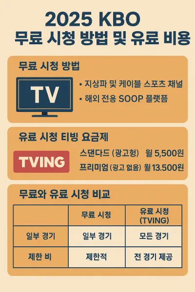 2025년 프로야구 무료 시청 방법 및 유료 비용 정보를 기준으로, 올 시즌 더 알차고 후회 없는 야구 생활 즐기시길 바랍니다.
