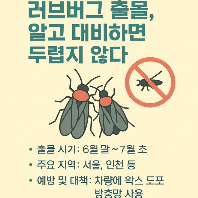 러브버그는 단순한 해충이 아닌, 생태계 내 중요한 분해자이자 불청객입니다. 출몰 시기의 특성을 이해하고, 차량과 주거지에 대한 예방 조치를 미리 취한다면 큰 불편 없이 넘어갈 수 있습니다. 불필요한 살충제 사용을 줄이고, 친환경적인 퇴치법을 실천하는 것이 인간과 자연 모두에게 유익한 선택입니다.