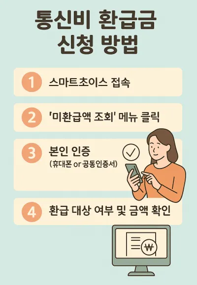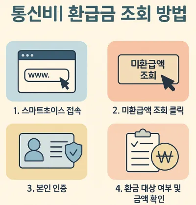 통신비 환급금은 내가 모르게 낸 **‘숨겨진 내 돈’**일 수 있습니다. 스마트초이스를 통해 간단히 확인하고, 각 통신사 고객센터를 통해 신청까지 마치면 생각보다 빠르게 환급을 받을 수 있습니다.
