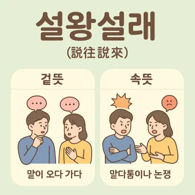 이 글에서는 설왕설래의 정확한 뜻과 의미, 실제 활용 예시, 자주 쓰이는 상황, 그리고 비슷하거나 반대되는 표현들과의 비교까지 총정리해 드립니다. 단순한 단어 하나지만, 올바르게 이해하고 사용할 수 있다면 더 정확하고 세련된 표현력을 갖추는 데 큰 도움이 될 것입니다.