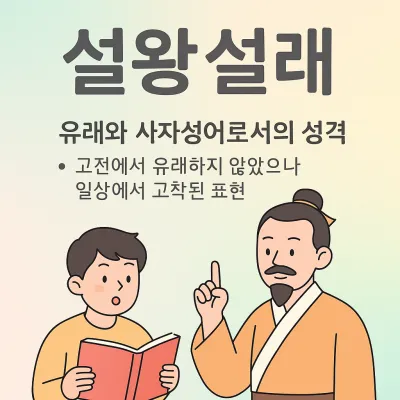 설왕설래는 네 글자로 구성된 완전한 사자성어이며, 고대 중국 고전에서 유래한 것은 아니지만 일상 속에서 고착된 표현입니다. 고전적 유래 없이 현대 사회에 자연스럽게 자리 잡았으며, 뉴스 헤드라인이나 회의록 등에서 혼란스러운 상황을 요약할 때 많이 사용됩니다. ‘논어’, ‘맹자’ 같은 경전에서 유래한 고사성어와는 달리, 회화적이고 현실적인 표현이라는 점에서 차별화됩니다.