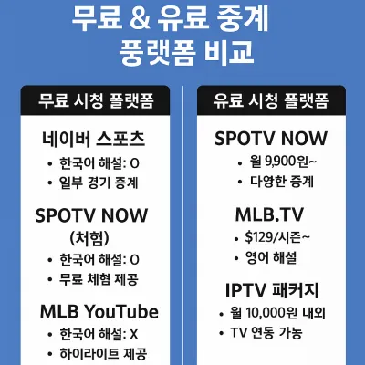 5. 메이저리그 무료 & 유료 시청 플랫폼 총정리 비교표
