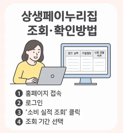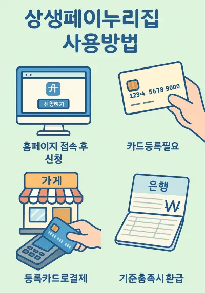 아래 내용은 이러한 사용자 불편을 줄이기 위해 가독성 중심 세부 구조로 구성했으며, 상생페이누리집을 처음 사용하는 사람도 단번에 이해할 수 있도록 단계별로 한층 더 세밀하게 정리하였다.