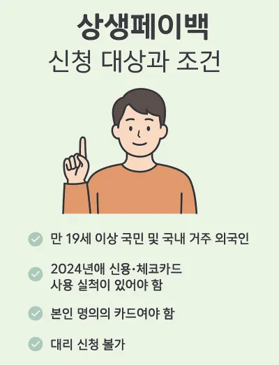 상생페이백은 전 국민을 대상으로 하지만, 모든 사람이 신청할 수 있는 것은 아니다. 자격 요건은 아래와 같다.