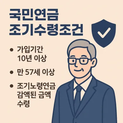 국민연금 조기수령조건은 단순히 연령만 보는 것이 아니라, 종합적인 기준을 충족해야 하므로 사전에 반드시 꼼꼼히 확인해야 합니다.