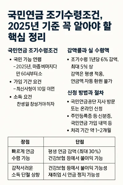 은퇴 시기를 앞당기거나 갑작스럽게 소득이 중단된 상황에서 '국민연금 조기수령조건'은 많은 이들이 궁금해하는 주제입니다. 그러나 연금을 미리 받는다는 결정은 신중해야 하며, 반드시 최신 기준을 정확히 확인해야 합니다.