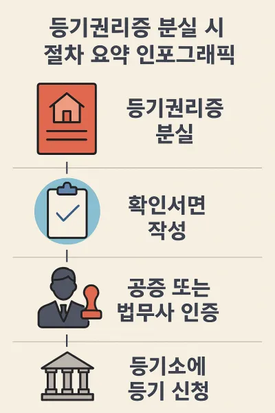- 등기권리증 분실신고서 제출 (신분증, 등기부등본 지참)