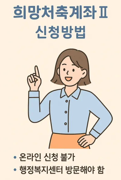 - 온라인 신청: 복지로(bokjiro.go.kr) → “희망저축계좌Ⅱ 신청” 메뉴 선택