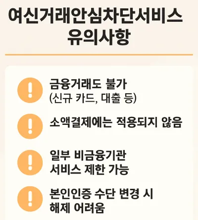 여신거래안심차단서비스는 강력한 보안 수단이지만, 몇 가지 한계점도 존재합니다.