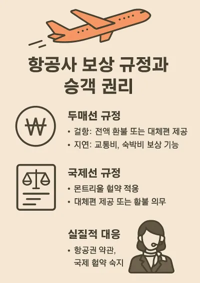 항공편 취소 시 대체편 제공 또는 환불 의무가 있으며, 승객은 본인 권리를 적극적으로 주장할 수 있다.
