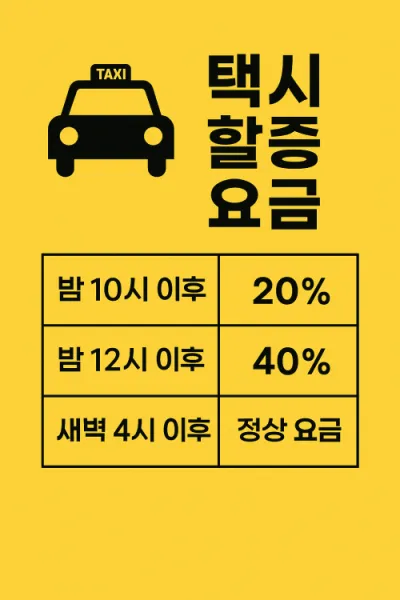 | 제주도 | 밤 11시 | 오전 4시 | 20% | 혼잡·공항 할증 별도 적용 |