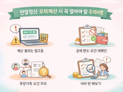 연말정산 모의계산은 매우 유용하지만 몇 가지 주의할 점이 있다.