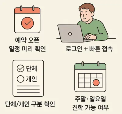 - 예약 오픈 5분 전부터 로그인해두고 ‘서울우유 공장 견학 신청’ 페이지를 열어두면 가장 성공률이 높다.