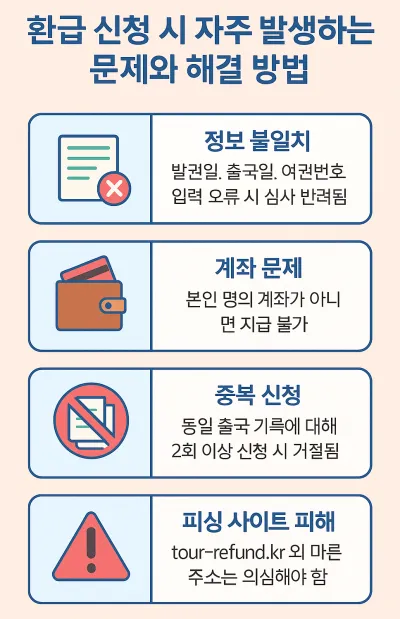 환급 신청 과정에서 종종 발생하는 문제와 이를 해결하는 방법은 다음과 같습니다.