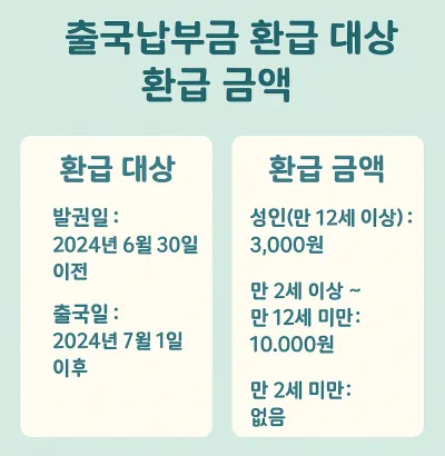 이에 따라 정부는 2024년 7월 제도를 개정했습니다. 성인의 경우 10,000원에서 7,000원으로 인하되었으며, 만 2세 이상 12세 미만 어린이는 전액 면제되었습니다. 다만 개정 이전에 발권된 항공권에는 여전히 10,000원이 부과되어 있어, 출국 시점이 제도 시행 이후라면 차액 환급이 가능하도록 절차가 마련된 것입니다.