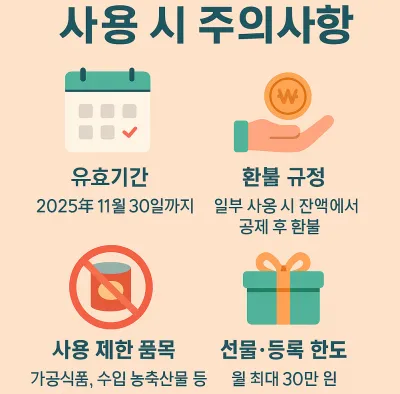 농할상품권은 단순한 할인 쿠폰이 아닌 제도적 성격이 강하므로, 반드시 사용 규정을 숙지해야 한다.
