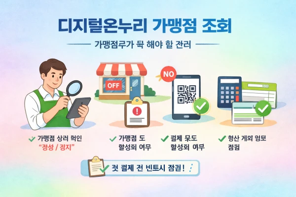 디지털온누리 가맹점은 단순한 결제수단을 넘어 매출 안정, 비용 절감, 고객 유입을 동시에 기대할 수 있는 제도다. 가맹점 찾기부터 등록, 결제, 정산까지 구조를 정확히 이해하면 운영 부담 없이 활용할 수 있다.